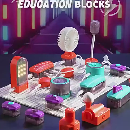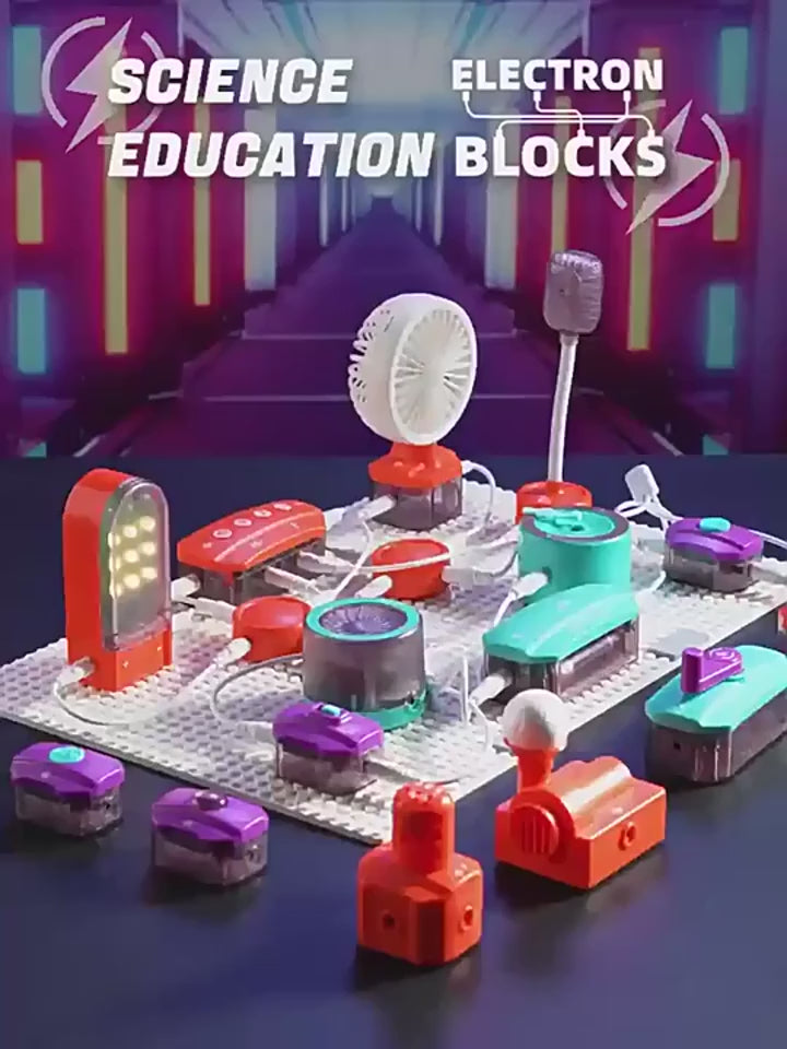53PCS SCIENTIFIC CIRCUIT SET - The components include power generator, hand generator, switches, wires, various resistors, LED lights, etc., which are used to build the simplest circuit model. In addition, there are photosensitive switches, spray, light show, audio, flying saucer, fan, karaoke microphone modules, etc., which are circuit models used to expand the gameplay. From simple switches and light connections to complex logic circuits, the needs of children of different ages can be met.